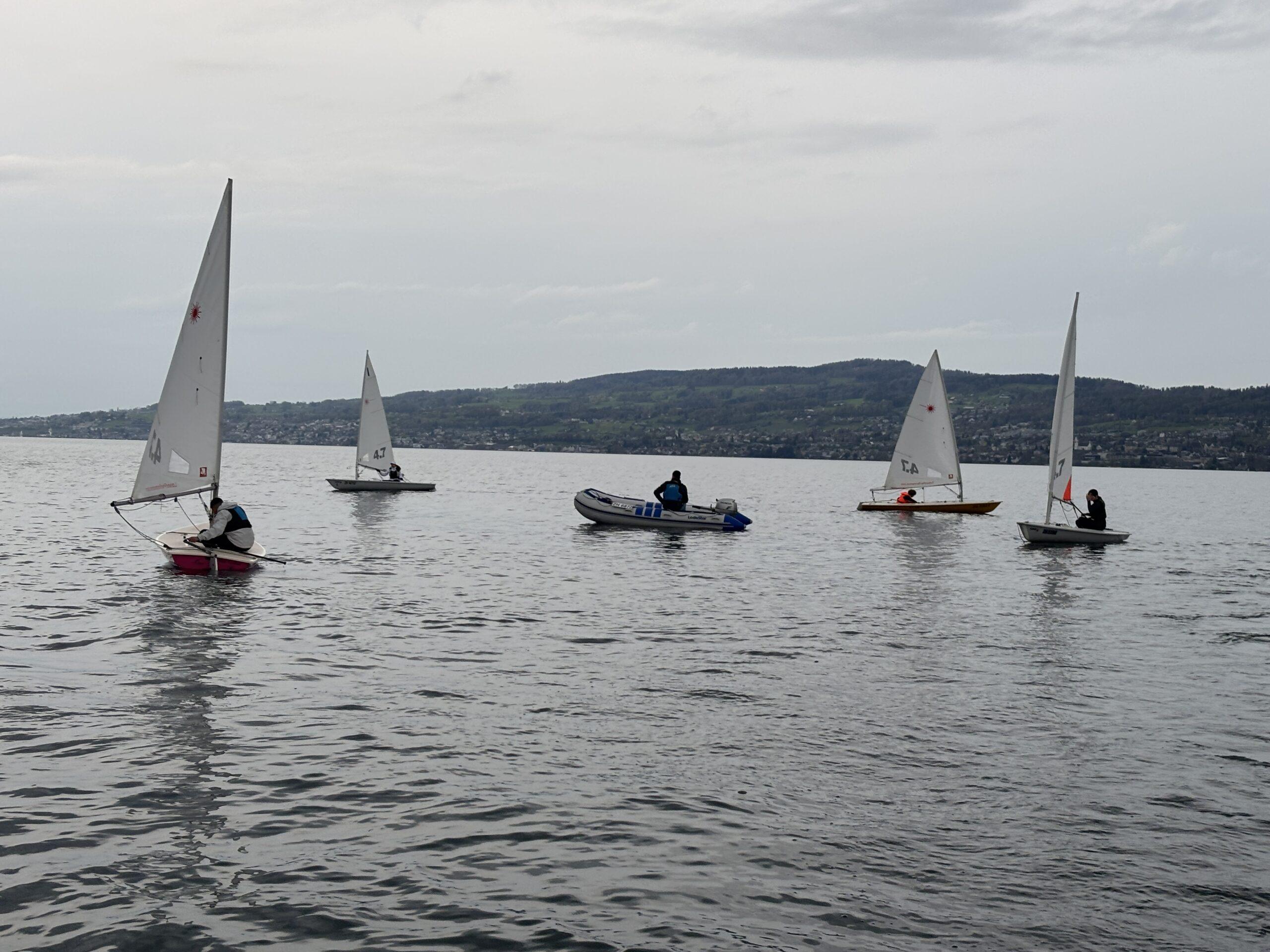 Für die meisten Kinder war es nach 6 Monaten Pause wieder das erste Mal auf dem Wasser. Einige wenige Kinder haben den ganzen Winter hindurch in Europäischen Küstengewässern gesegelt, bzw. waren Regiotraining in Stäfa mitte März. Dementsprechend ging es auch darum, das Material kennen zu lernen bzw. sich ans Boot zu gewöhnen.